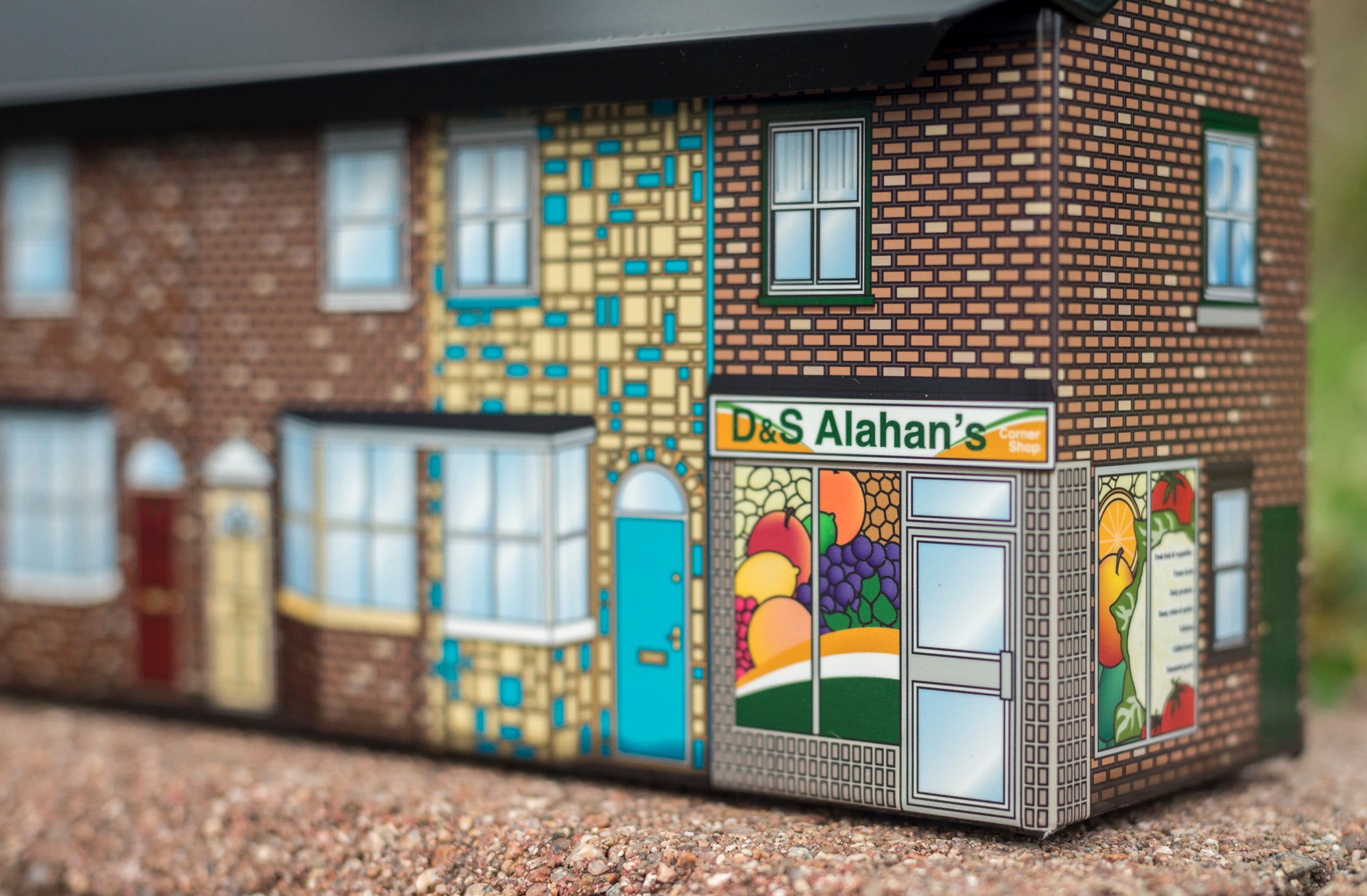 A: We knew you'd ask that question! Yes, there are actually seven residences on Coronation Street, between the Rover's and Alahan's... and we would have loved to include them all. However, that would have pushed the mailbox to about 30" wide, which isn't practical or even possible. So we went with three houses: numbers 1, 7 and 9.